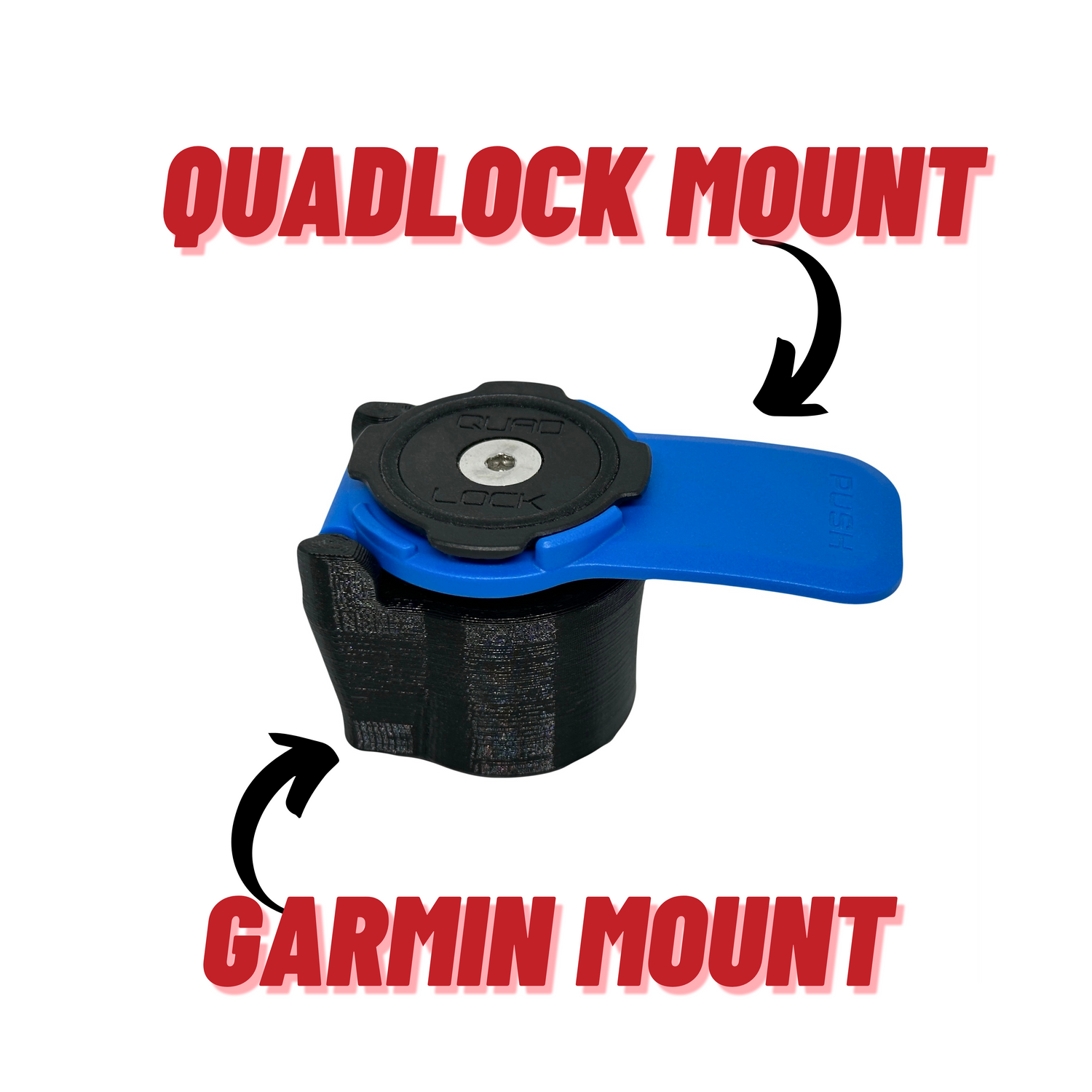 GarminLock is designed to connect a Garmin Mount to a QuadLock mount. Simply snap the GarminLock onto a compatible QuadLock device, now twist the GarminLock into place on your Garmin mount.